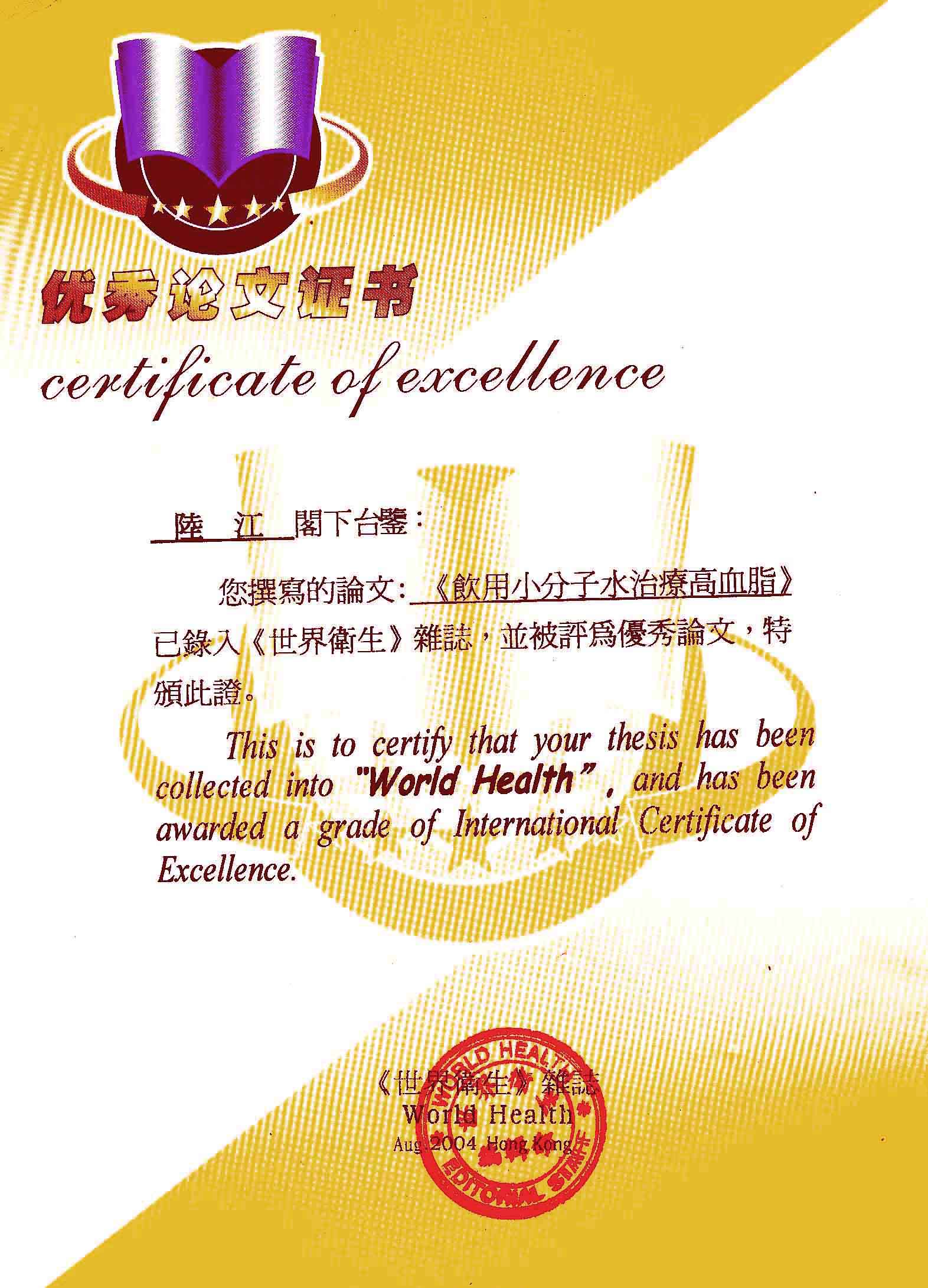 人類幾千年來患以上病癥需終生服藥,幾十年也不能治愈??墒俏覈蠈幍母呒壒こ處熽?nbsp;江,于1990年想根治高血壓,研究發(fā)明了離子水瓶,處理出微小分子團(tuán)水供飲用,經(jīng)過醫(yī)院臨床試用和專家鑒定,1999年獲中國發(fā)明專利權(quán),產(chǎn)品于2000年投放市場后一直跟蹤調(diào)查,據(jù)全國各地用戶反饋:祛除了高低血壓、糖尿病和冠心病,并使前列腺增生、咽喉炎、鼻竇炎、慢性氣管炎、支氣管炎、矽肺病、哮喘、慢性胃炎、腸炎、慢性膽囊炎、慢性腎炎、腎衰、膀胱炎、便秘、痔瘡、風(fēng)濕性關(guān)節(jié)炎和濕疹皮炎及中風(fēng)后遺癥等病癥不藥而愈。為什么喝微小水能治20多種病?陸 江從1991年德國科學(xué)家發(fā)現(xiàn)細(xì)胞膜水通道僅為2納米獲得啟發(fā),認(rèn)為多種器官患病是因細(xì)胞脫水,不能正常代謝和分裂增殖,才使器官細(xì)胞減少致衰弱萎縮而形成細(xì)胞缺水性病癥。22年來的實踐有力地支持了“細(xì)胞脫水致病”這一重要論點,表明喝微小水可滿足細(xì)胞的生理需求,補水就能祛病,是生命科學(xué)新亮點。
